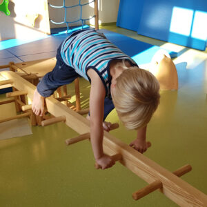 Um Kinder in ihrer motorischen Entwicklung optimal zu begleiten, nutzen wir Materialien aus der Bewegungspädagogik nach Hengstenberg / Pikler und haben das Projekt „Fitte Kids“ ins Leben gerufen – ein Zusatzangebot, welches in regelmäßigen Abständen am Nachmittag stattfindet. Mit Hilfe der hochwertigen Kletter- und Bewegungselemente und ihrem Einsatz in unserer Turnhalle unterstützen wir sowohl die körperbezogenen, als auch die sprachlichen und kognitiven Kompetenzen der Kinder. Die Verknüpfung all dieser Bereiche trägt wesentlich zur Krankheitsvorbeugung, Stärkung der Selbstwirksamkeit und zum kindlichen Wohlbefinden bei.